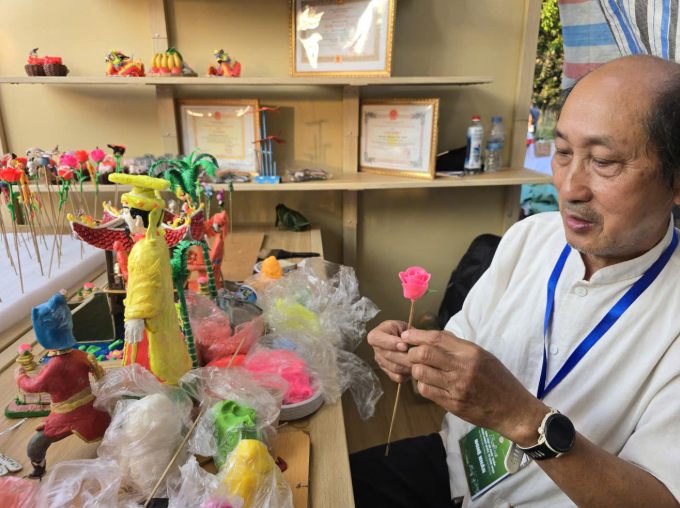 Nghệ nhân Nguyễn Văn Định say sưa với sản phẩm nặn tò he - Ảnh: Hồng Vân