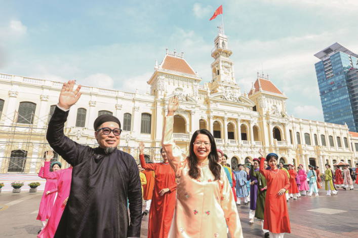 Lễ hội Áo dài Thành phố Hồ Chí Minh (TP. HCM) lần thứ 11, diễn ra từ ngày 1 đến 9/3/2025, đã khép lại với những dấu ấn sâu sắc, khẳng định vị thế của áo dài như một trong những biểu tượng văn hóa Việt Nam. Với chủ đề “Áo dài Việt Nam - Vươn cao Việt Nam”, Lễ hội không chỉ tôn vinh vẻ đẹp của trang phục truyền thống mà còn góp phần thúc đẩy du lịch và phát triển kinh tế địa phương. Ðược tổ chức tại hơn 20 địa điểm quan trọng của thành phố, từ các di tích lịch sử, văn hóa đến các điểm đến du lịch nổi tiếng, lễ hội mang đến chuỗi hoạt động phong phú như chương trình khai mạc tại phố đi bộ Nguyễn Huệ vào ngày 7/3, đồng diễn dân vũ áo dài với hơn 50.000 người tham gia vào ngày 8/3, cùng các cuộc thi như “Duyên dáng Áo dài TP. HCM”, thi vẽ trên áo dài và thi ảnh đẹp áo dài online. Tất cả đã tạo nên một không gian văn hóa sôi động, lan tỏa tình yêu áo dài trong cộng đồng và thu hút đông đảo du khách trong và ngoài nước.