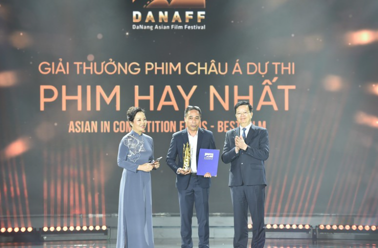 Phó Thủ tướng Mai Văn Chính và Chủ tịch Hiệp hội Xúc tiến phát triển Điện ảnh Việt Nam Ngô Phương Lan trao giải thưởng Phim châu Á dự thi hay nhất tại LHP châu Á Đà Nẵng lần thứ III (DANAFF III)