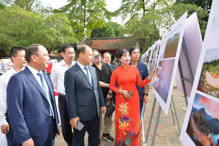 Các đại biểu tham quan Triển lãm ảnh Thời sự – Nghệ thuật “Tổ quốc – 80 mùa thu Độc lập”